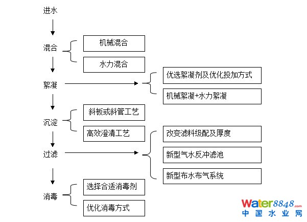 我國飲用水新標(biāo)準(zhǔn)(GB5749-2006)已于2012年7月強(qiáng)制執(zhí)行,但目前95%以上的地表水廠是在現(xiàn)行水質(zhì)標(biāo)準(zhǔn)頒布之前設(shè)計(jì)建造的,設(shè)計(jì)及運(yùn)行參數(shù)完全達(dá)不到新標(biāo)準(zhǔn)的要求。面對(duì)不斷增加的供水壓力,水廠改造已經(jīng)成為我國供水領(lǐng)域的首要任務(wù)。