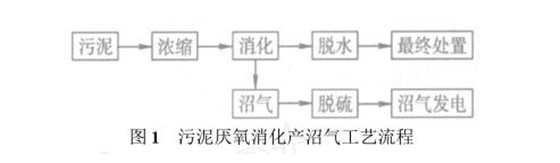 污泥厭氧消化產(chǎn)沼氣工藝流程如圖1。