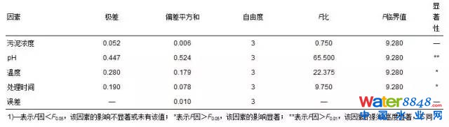表 3 污泥SCOD正交試驗極差及方差分析 1)