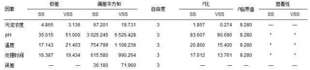 表 4 污泥SS、 VSS正交試驗極差及方差分析 1)
