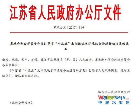 江蘇省政府辦公廳關(guān)于印發(fā)江蘇省“十三五”太湖流域水環(huán)境綜合治理行動(dòng)方案的通知