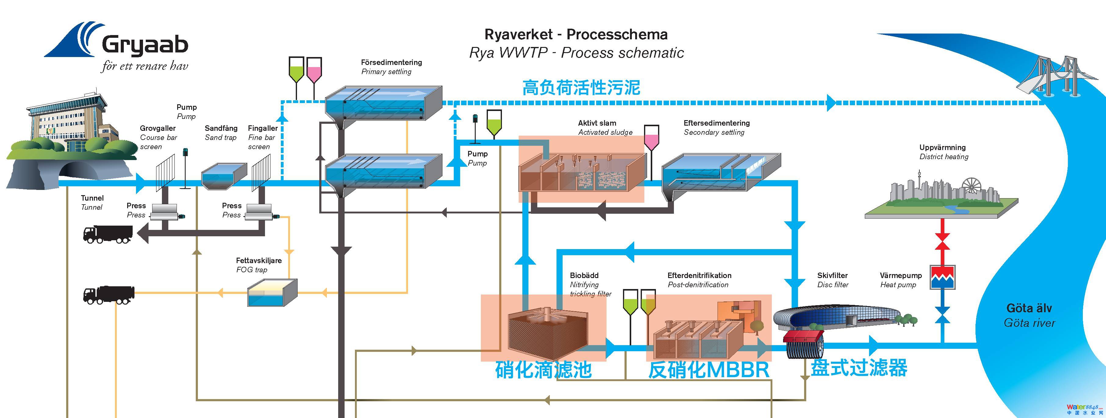 Rya污水廠位于瑞典港口城市哥德堡,處理哥德堡及周邊五個(gè)市鎮(zhèn)約83萬人口當(dāng)量的污水,日平均處理量約為350000m³,是斯堪的納維亞地區(qū)最大的污水處理廠之一。