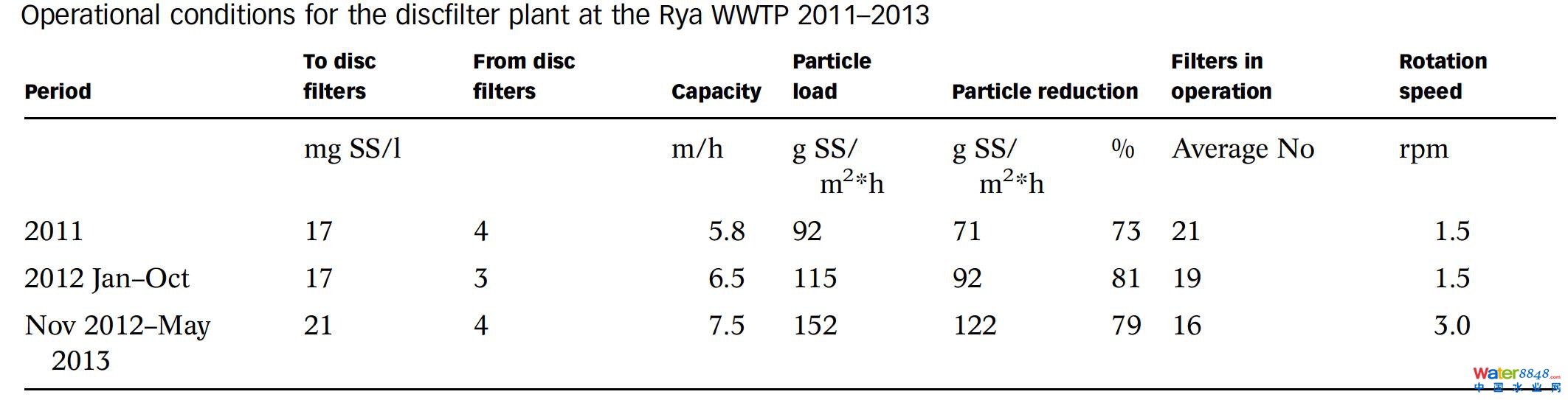 總的來說,盤式過濾器自運(yùn)行投產(chǎn)以來,表現(xiàn)都很好,出水的總磷和懸浮固體濃度分別能穩(wěn)定維持在0.3 mg Ptot /L和5 mg/L以下。另外,盤式過濾器提高了固液分離的效率,甚至二沉池的負(fù)荷都能有所提高。Rya污水廠的數(shù)據(jù)顯示了大型盤式過濾器系統(tǒng)能夠成功地應(yīng)對(duì)進(jìn)水流量和懸浮固體含量的變化。