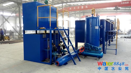 廢水中懸浮物的濃度不僅僅只涉及到出水的SS指標,而且出水的BOD5、CODCr、色度等指標也與其有關(guān),這是因為組成水中懸浮物的主要是活性污泥絮體,本身有機成分就很高,較高的懸浮物含量會使得出水中BOD5、CODCr、色度等均增加,所以控制廢水處理站出水的SS指標是最基本的,也是十分重要的。污水中的SS去除主要靠格柵過濾掉大部分固體雜質(zhì)后,再用氣浮進一步處理去除水中質(zhì)量體積較小的懸浮物。該技術(shù)是目前國內(nèi)外普遍采用的一種水質(zhì)處理方法,它被廣泛用于制藥廢水預處理及后處理過程中,該設備氣泡發(fā)生量大且致密,直徑更加微小,可達到20微米,吸附力更強,在反應過程中,微氣泡與絮凝體發(fā)生強力結(jié)合,懸浮物與水的分離瞬間完成,完全徹底,池底污泥可以間歇性排放。運轉(zhuǎn)表明,處理效果穩(wěn)定、可靠、達標,操作方便,易于掌握,運行成本低。經(jīng)加藥反應后的污水進入氣浮的混合區(qū),與釋入后的溶氣混合接觸,使絮凝體粘附在細微氣泡上,然后進入氣浮區(qū)。絮凝體在氣浮力的作用下浮向水面形成浮渣,然后進入氣浮區(qū)。絮凝體在氣浮力的作用下浮向水面形成浮渣,下層的清水經(jīng)集水器流至清水池后,一部分回流作溶氣水使用,剩余清水通過溢流口流出。氣浮池水面上的浮渣積聚到一定厚度以后,由刮沫機刮入氣浮機污泥槽后排出,可下沉的SS在錐體內(nèi)沉淀,定期排除。
