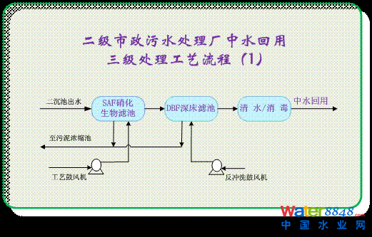 奧迪菲中水回用處理解決方案是針對(duì)缺水地區(qū)以市政污水處理廠的一級(jí)或二級(jí)排放為水源,經(jīng)過(guò)好氧生化、深床過(guò)濾和消毒使出水達(dá)到各種回用要求的處理工藝。是既能使污水無(wú)害化,又能使污水資源化,節(jié)約淡水資源,是我國(guó)當(dāng)前和未來(lái)相當(dāng)長(zhǎng)的時(shí)間內(nèi)重點(diǎn)推廣的處理技術(shù)。目前市場(chǎng)上采用的處理工藝較繁雜,良莠不齊。有的過(guò)于簡(jiǎn)單,只能去除以懸浮物為主體的污染物,對(duì)溶解性的污染物無(wú)法去除,有些工藝又過(guò)于復(fù)雜,如采用微濾或超濾等膜分離技術(shù),投資及運(yùn)行成本過(guò)高,操作程序復(fù)雜,運(yùn)行維護(hù)要求高,雖然出水水質(zhì)很好,但由于設(shè)備的性價(jià)比很低,難伺候,市場(chǎng)推廣遇到瓶頸制約。