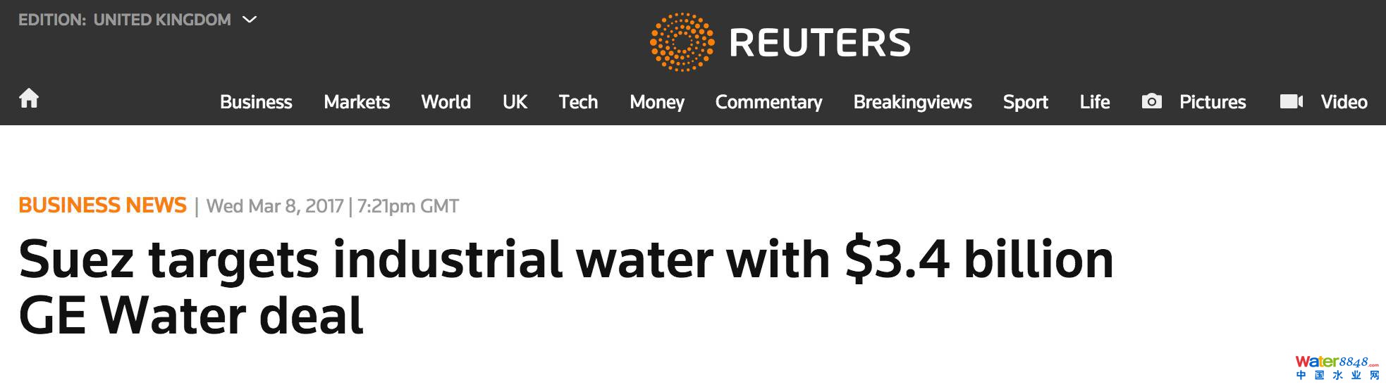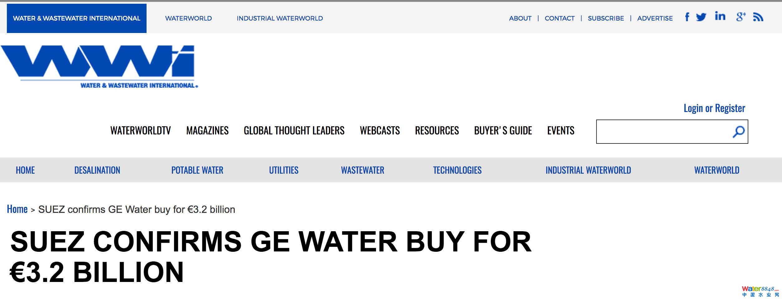 看重了GE水處理在工業(yè)水領(lǐng)域的優(yōu)勢(shì),蘇伊士環(huán)境聯(lián)合加拿大基金公司Caisse de dépôt et placement du Québec (CDPQ)以32億歐元收購了GE的全部股權(quán),兩家將組成合資公司,其中蘇伊士環(huán)境持股70%。Jean-Louis Chaussade先生透露,GE水處理的出售競(jìng)標(biāo)已經(jīng)進(jìn)行好幾輪了,在第三輪也是最后一輪的對(duì)手就剩下了剛剛在去年年底收購了法國家具零售巨頭BUT的美國私募基金 Clayton, Dubilier&Rice。蘇伊士環(huán)境的財(cái)務(wù)主管Christophe Cross則表示收購一旦正式完成后蘇伊士將對(duì)其增資7.5億歐元。