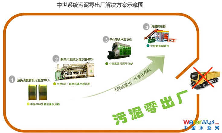 針對(duì)傳統(tǒng)的填埋、焚燒、土地利用等污泥處理處置技術(shù)占用土地面積大、耗能高、投資運(yùn)營費(fèi)用高、二次污染等諸多弊端,中世環(huán)境提出了“中世消泥王”為核心的技術(shù)應(yīng)用體系。