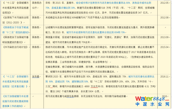 (2)目標處理率從十二五城市污水處理率85%、縣城污水處理率70%,升級到十三五設市城市和縣城污水處理率分別達到92%和85%)。