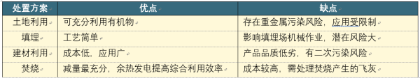 國內(nèi)外現(xiàn)有的后端處置手段主要包括衛(wèi)生填埋、焚燒、土地利用、建筑利用等。