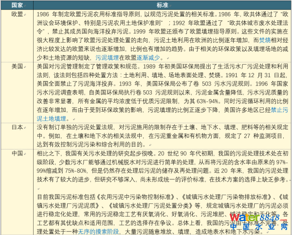 中國的污泥有機物和重金屬含量高。有機物含量高使得污泥極易滋生細菌,并且發(fā)生腐臭;重金屬含量的超標,將影響污泥的土里利用。不經(jīng)正規(guī)處理處置的污泥隨意堆放,對于環(huán)境的二次污染的危害甚至大過污水本身的危害。這種環(huán)境的倒逼是出臺相關支持政策的依據(jù),中國污泥的二次污染已經(jīng)到了必須面對、抓緊整頓的時候。