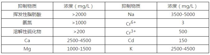 附:下表為對(duì)厭氧消化有抑制作用的物質(zhì)及濃度(僅供參考)