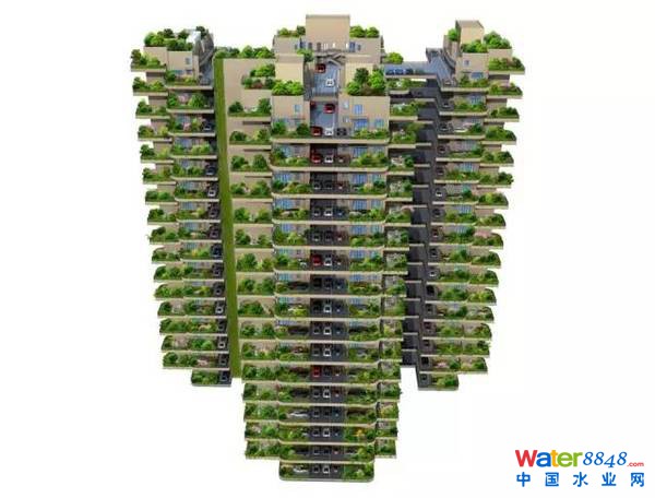 每層都有公共院落,每戶(hù)都有私人小院及一塊幾十平米的土地,可種花種菜、遛狗養(yǎng)鳥(niǎo),可將車(chē)開(kāi)到每層樓上的住戶(hù)門(mén)口,建筑外墻長(zhǎng)滿(mǎn)植物,人與自然和諧共生。