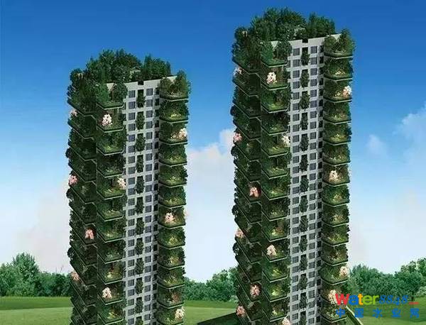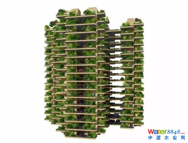 建筑外墻90%的面積被綠色植物包圍,遠(yuǎn)觀一個(gè)樓群如同一片森林。