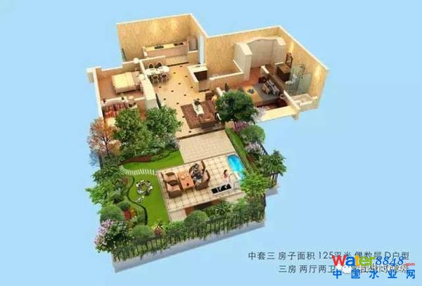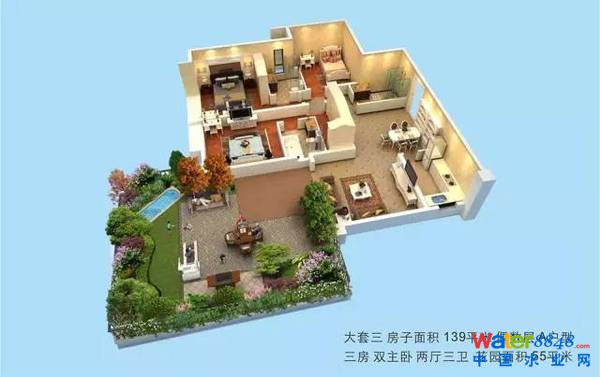 花草樹(shù)木的栽種:在設(shè)計(jì)方案中,所有院子的混凝板都是下沉板上翻梁,就像衛(wèi)生間的結(jié)構(gòu)一樣。下沉板有60厘米左右深度,也就是說(shuō)可以回填土60厘米厚,在靠墻栽種大樹(shù)的地方還可做一個(gè)向上50厘米的樹(shù)池,這樣,在靠墻的地方便有1米多深的覆土,即可以栽種4-5米高的樹(shù),并將樹(shù)干固定在墻上,以防大風(fēng)將樹(shù)刮倒或使其搖晃,在其它不靠墻的地方才栽種1-2米的低矮植物、果樹(shù)或灌木!這樣,整個(gè)庭院的花草樹(shù)木便顯得錯(cuò)落有致,任何大風(fēng)也沒(méi)問(wèn)題。