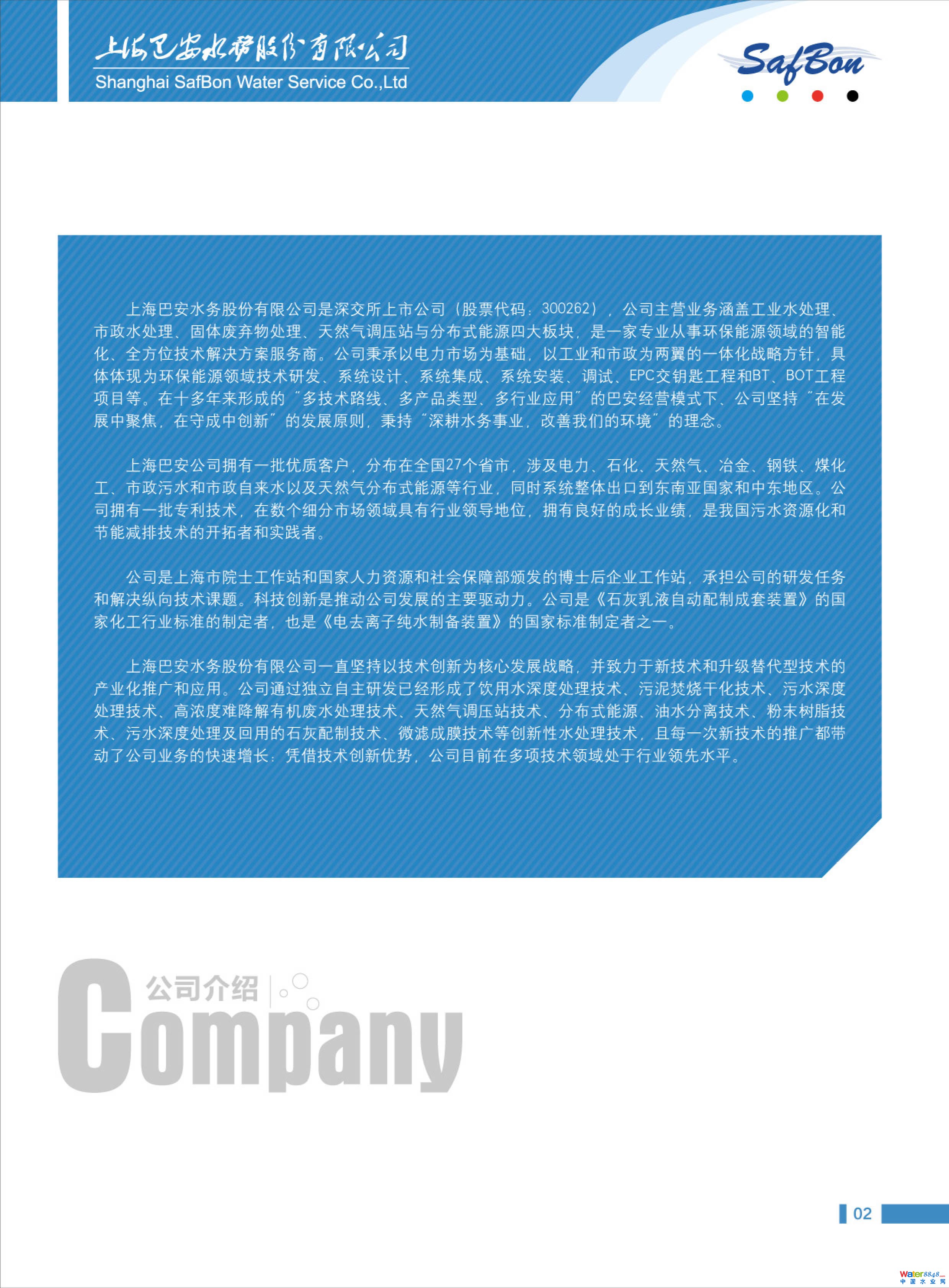 巴安水務(wù)是深交所上市公司(股票代碼:300262),公司主營(yíng)業(yè)務(wù)涵蓋工業(yè)水處理、市政水處理、固體廢棄物處理、天然氣調(diào)壓站與分布式能源四大板塊,是一家專業(yè)從事環(huán)保能源領(lǐng)域的智能化、全方位技術(shù)解決方案服務(wù)商。巴安水務(wù)秉承以市政板塊為基礎(chǔ),以工業(yè)和固廢為兩翼,以天然氣為補(bǔ)充的一體化戰(zhàn)略方針,具體體現(xiàn)為環(huán)保能源領(lǐng)域技術(shù)研發(fā)、系統(tǒng)設(shè)計(jì)、系統(tǒng)集成、系統(tǒng)安裝、調(diào)試、EPC交鑰匙工程和BT、BOT工程項(xiàng)目等。在十多年來形成的“多技術(shù)路線、多產(chǎn)品類型、多行業(yè)應(yīng)用”的巴安水務(wù)經(jīng)營(yíng)模式下,公司堅(jiān)守“在發(fā)展中聚焦,在守成中創(chuàng)新”的發(fā)展原則,秉持“深耕水務(wù)事業(yè),改善我們的環(huán)境”的理念。在黨的十八大三中全會(huì)所帶來的重大機(jī)遇下,巴安水務(wù)更以建設(shè)美麗中國(guó)為己任,充分發(fā)揮自身優(yōu)勢(shì),在中心城區(qū)分質(zhì)供水(直飲水),污泥干化協(xié)同發(fā)電,危廢處理等新興領(lǐng)域均有所突破,為祖國(guó)生態(tài)文明建設(shè)貢獻(xiàn)著自己的力量。