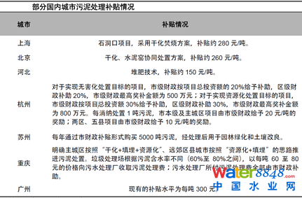 目前國內(nèi)已經(jīng)有部分城市對污泥處理處置給予補貼,由于處理方案不同等因素造成標準不一,污泥處理產(chǎn)業(yè)很難自己盈利,運轉(zhuǎn)嚴重依靠政府補貼。同時,補貼覆蓋范圍明顯不足。