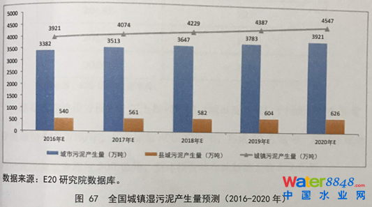 十三五新增或改造污泥處置規(guī)模 6.31 萬噸/日,要求城市污泥處理率達 90%,縣城 70%,建制鎮(zhèn)50%。預計城鎮(zhèn)污水投資約5829 億元,其中污泥5.4%約316億元。2015年污泥產(chǎn)量3807萬噸/年,預計2020年末污泥產(chǎn)量4547萬噸/年