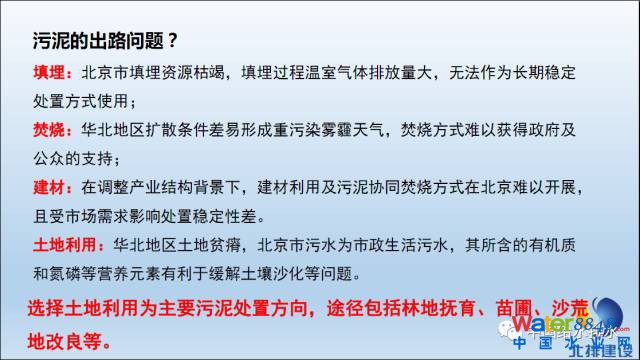 從污泥的處置的角度上來說,填埋、焚燒、建材都無法對污泥進(jìn)行長期穩(wěn)定的處置,同時也存在一定的風(fēng)險。北京市污水為市政污水,污泥所含的有機(jī)物和氮磷等營養(yǎng)元素非常有利于緩解土壤沙化等問題,因此我們選擇土地利用作為主要的污泥處置方向。