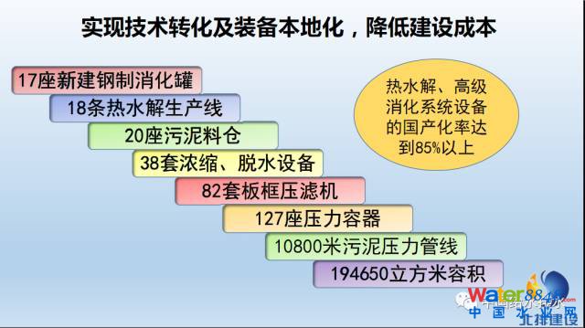 在建設(shè)過程中,我們建立了熱水解系統(tǒng)的國內(nèi)設(shè)計、制造機(jī)安裝的標(biāo)準(zhǔn);建立了高級厭氧消化設(shè)備采購,工藝安裝、調(diào)試和試運(yùn)行的標(biāo)準(zhǔn)和流程,從而保證過硬的工程質(zhì)量。同時,我們實(shí)現(xiàn)了技術(shù)轉(zhuǎn)化及設(shè)備本地化,熱水解和高級消化系統(tǒng)設(shè)備國產(chǎn)率達(dá)到85%以上,大大降低了建設(shè)的成本。