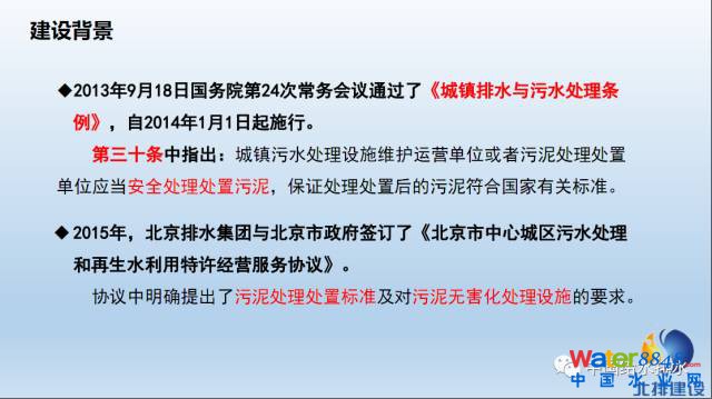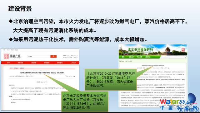 同時因?yàn)楸本┲卫砜諝馕廴,北京的火力發(fā)電廠將逐步改為燃?xì)怆姀S,蒸汽價格居高不下,導(dǎo)致現(xiàn)有污泥消化系統(tǒng)的成本將增高。同時如果采用污泥的熱干化技術(shù),需要大量外購蒸汽等能源,未來的運(yùn)行成本將大幅度增加。