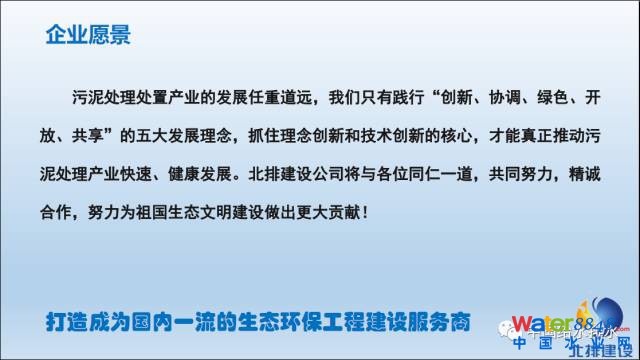 最后,污泥處理處置產(chǎn)業(yè)的發(fā)展任重道遠(yuǎn),我們只有踐行“創(chuàng)新、協(xié)調(diào)、綠色、開放、共享”的五大發(fā)展理念,抓住理念創(chuàng)新和技術(shù)創(chuàng)新的核心,才能真正推動污泥處理產(chǎn)業(yè)快速、健康發(fā)展。北排建設(shè)公司將與各位同仁一道,共同努力,精誠合作,努力為祖國生態(tài)文明建設(shè)作出更大貢獻(xiàn)!