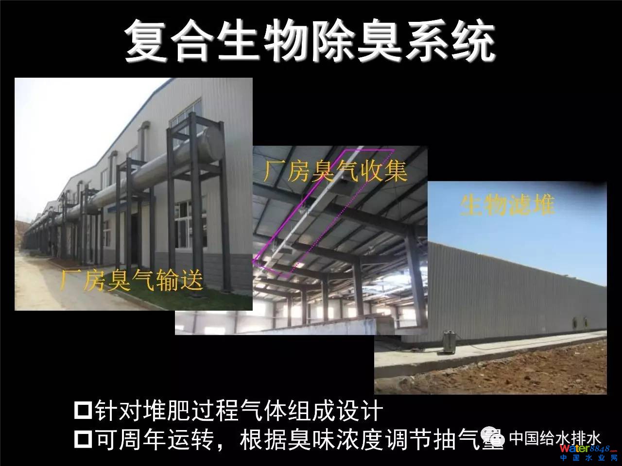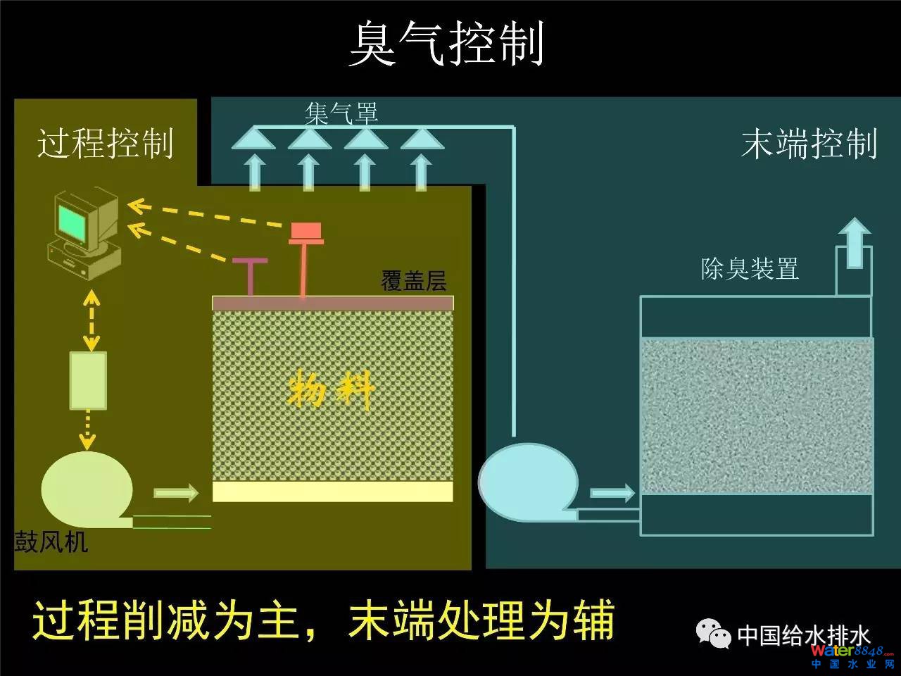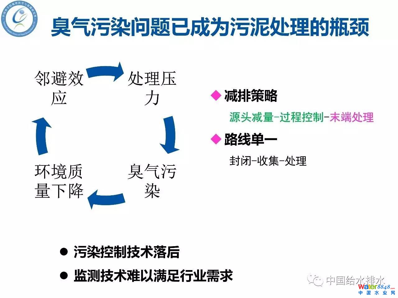 (詳見PPT)當然臭氣出來以后我們要進封閉、收集、處理,這是沒有辦法的,就是末端處理。在控制策略上首先從源頭、過程減少,在源頭、過程減少臭氣的產(chǎn)生和釋放以后,最后要進行一個末端的臭氣處理。這樣就比簡單的完全依靠末端消極的臭氣處理會減少很多的除臭的成本,降低能耗。