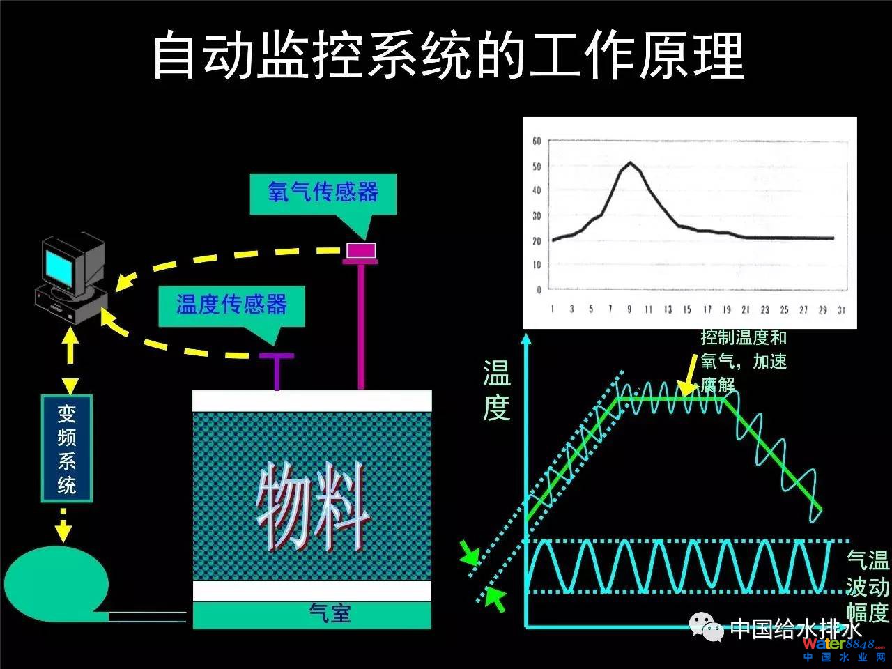 (詳見PPT)這是一個自動控制的原理圖,在這里面有一個發(fā)酵池,上面溫度、氧氣的傳感器等等,起到一個作用。在我印象當中昨天有一個報告也提到,外界的溫度對堆體的溫度有很大的影響,包括上午的報告也有講到,熱交換對堆體的溫度有影響,所以我們要考慮到外界的溫度對堆體內(nèi)部溫度的影響,像冬季起溫比較慢,所以都要考慮外界氣溫對堆體溫度的影響,在自動控制軟件設(shè)計的時候要考慮這些問題。