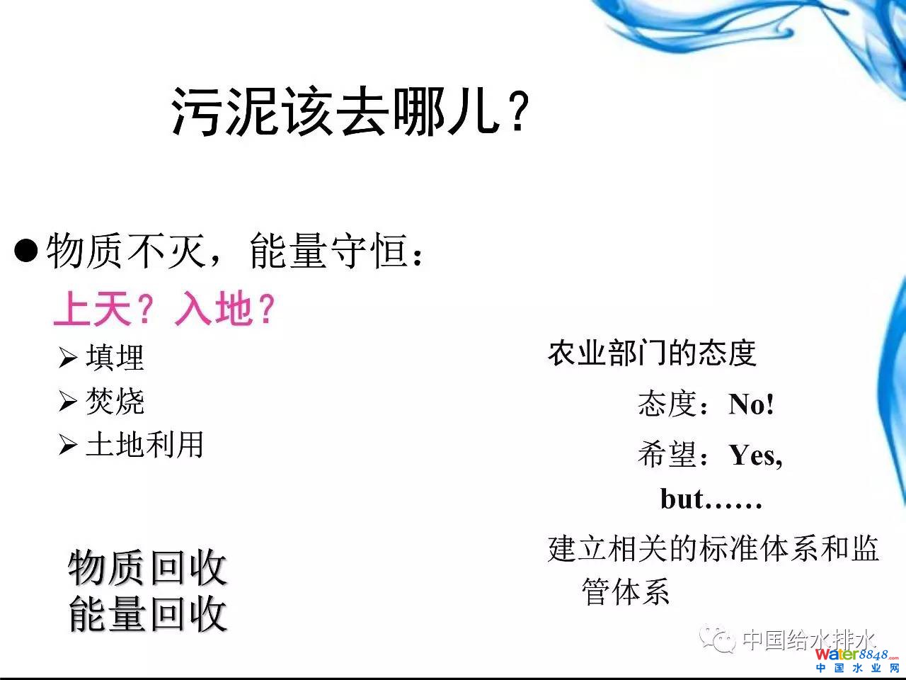 污泥究竟去哪兒?我就說物質(zhì)不滅、能量守恒。對農(nóng)業(yè)部門說,人家說No,你想讓人家說Yes,怎么消除人家的疑慮。當然咱們要做好自律、建立健全監(jiān)管措施和標準體系。