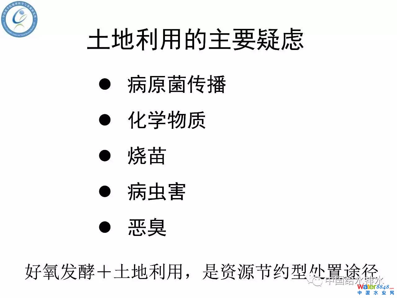 污泥之所以堆肥技術(shù)方向現(xiàn)在不受歡迎,很多人實際上還是有很多的疑慮,污泥進入土里面,里面有病原菌的傳播、有毒有害的化學物質(zhì)可能對環(huán)境的一些影響。另外,污泥如果處理不好可能會燒苗,有些是污泥用到作物上對作物燒了,還有一些病蟲害的傳播。最重要的是污泥施用不方便,現(xiàn)在化肥隨處可以買掉,像有機物料農(nóng)民也不愿意施,臭烘烘的。但是根據(jù)我們做了一些工作,我們認為污泥經(jīng)過好氧堆肥以后然后再進行土地利用,所針對的上面的問題可以得到一些解決。但是有些問題是解決不了的,解決不了就化害為利,盡可能地減少它的危害。