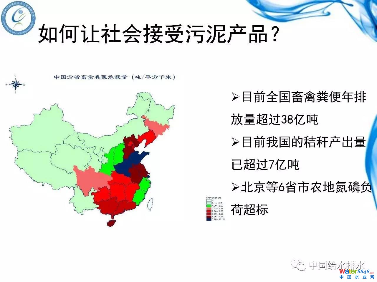 至于怎么讓農(nóng)民接受污泥的產(chǎn)品,很多人說污泥很好、污泥種出來的瓜甜、花鮮艷等等,怎么夸人們都是不相信的,人們認為污泥里面有很多有毒有害的物質(zhì)。所以對污水處理部門包括城建部門和農(nóng)業(yè)部門的觀點不一致,農(nóng)業(yè)部門看不上,住建口的總說一年3000多萬噸的污泥,里面含了很多的氮磷鉀,但人家看不上。因為對于農(nóng)業(yè)部門來說,每年產(chǎn)生的畜禽糞便38億噸,秸稈很多,你想他能看中你幾千萬含水率80%的污泥嗎?你從養(yǎng)分來說根本打不動,只能說我這個東西送到你那個里面不會帶來污染,他的危害比畜禽糞便還要低,這樣可能還能接受。說句不客氣的話,管理部門不站在人家的位置上去思考問題。這樣你說你的,我說我的,沒有一致的意見。