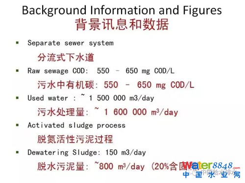 當(dāng)我們談污泥污水回收的時(shí)候要介紹一下背景,在新加坡污水處理是分流系統(tǒng),有機(jī)碳是550-650,新加坡華人占人口約75%,飲食習(xí)慣和大陸沒(méi)有區(qū)別。但是污水的COD的含量是在正常水平。污水處理量目前是160萬(wàn)噸,污水處理主要是應(yīng)用脫氮活性污泥工藝,污泥每天約800立方米,20%的含固量。