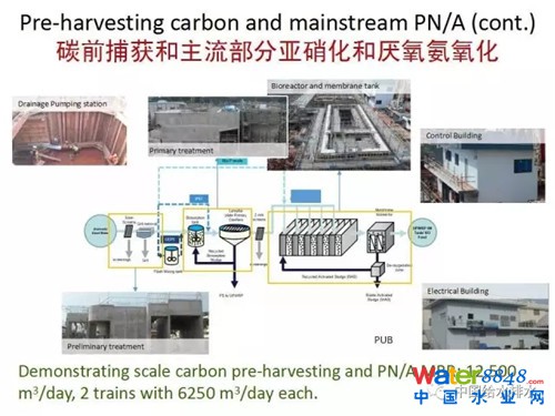 所以從2011年以來(lái),新加坡PUB做了一系列的研發(fā)項(xiàng)目,三個(gè)中試的項(xiàng)目就著眼于回答這些問(wèn)題。而最新的就是日處理1.2萬(wàn)噸稱(chēng)之為示范廠的項(xiàng)目,是模擬今后的第二階段的污水處理,看看主流厭氧氨氧化能不能實(shí)現(xiàn)。
