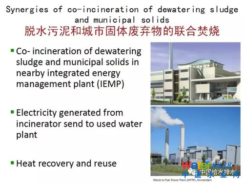 最后一個(gè)項(xiàng)目把新的污水廠里脫水的污泥就近送到旁邊的城市固體廢棄物處理廠,與城市固體一起焚燒,產(chǎn)生的電源送回到污水處理廠。