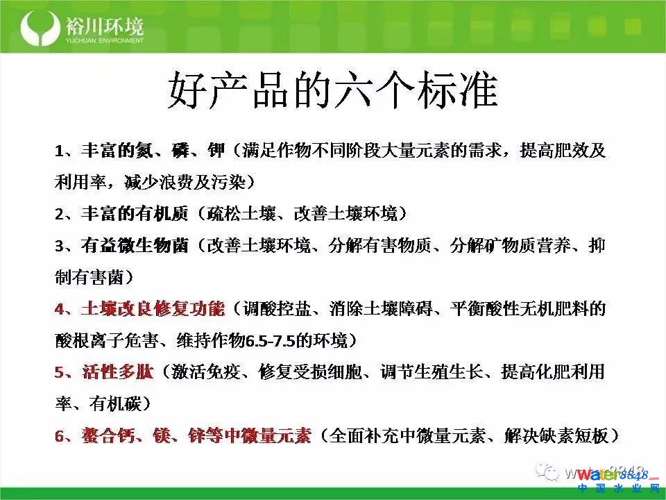 好有機肥產(chǎn)品的標(biāo)準(zhǔn):要有豐富的氮磷鉀、要有豐富的有機質(zhì)、有益微生物菌、對土壤要具有改良功能、同時要有活性多肽。所以裕川打造的是活性多肽,同時還有鰲合鈣。裕川人花過去十年的時間,我們就是希望能夠成為中國農(nóng)業(yè)綠色發(fā)展的有力倡導(dǎo)者。