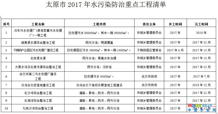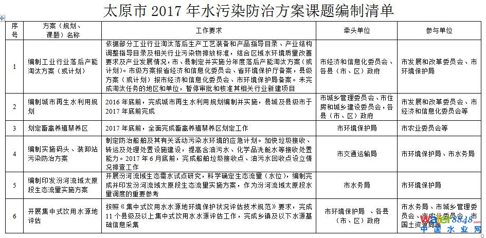 《太原市水污染防治2017年行動計劃》已經(jīng)印發(fā)。根據(jù)計劃,2017年太原將實施水污染防治項目23個。全文如下: