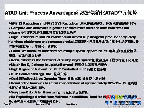 首先和大家介紹ATAD自然式污泥好氧消化技術(shù),在這里也希望把我們的一些最新的進(jìn)展情況跟各位專家、環(huán)保界的同仁們匯報(bào)一下:這項(xiàng)技術(shù)在歐美已有50多座成功運(yùn)行的案例,在去年8-9月份在國(guó)內(nèi)也首次通過(guò)了中試驗(yàn)證。