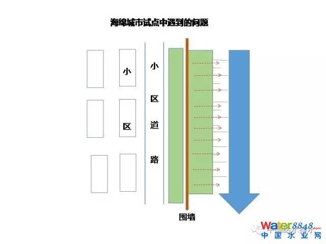 這個案例非常刺激我們,我們在最近推進海綿城市評審過很多項目,也參與過很多項目,有一條河,有一個綠色空間到河有一個坡度,紅色的是小區(qū)的墻,墻內(nèi)有一個小區(qū)的綠道,這家設(shè)計單位還是非常不錯的設(shè)計單位,一流的設(shè)計單位,工程技術(shù)人員做的方案,我們審查方案的時候,沿著墻這里發(fā)現(xiàn)有十幾個出口,由于空間條件和豎向關(guān)系,就沒有做綠色花園和生態(tài)設(shè)施。我們可以設(shè)身處地,你如果作為設(shè)計人員怎么考慮這個問題,他們的方案在這里截留管,還要上設(shè)施,就要跨馬路甚至還要提升等等一系列的問題,我很奇怪為什么這么做?這是新建小區(qū)。這個地方怎么會有這個口?會是什么口?這些設(shè)計人員到小區(qū)去看了,就是小區(qū)道路上的雨水,很小的管子。在座的每一位工程師只要動一點腦筋,只要在那里做小缺口,完全可以消納雨水,這一條完全不用做截留管。這樣的案例還有很多很多。
