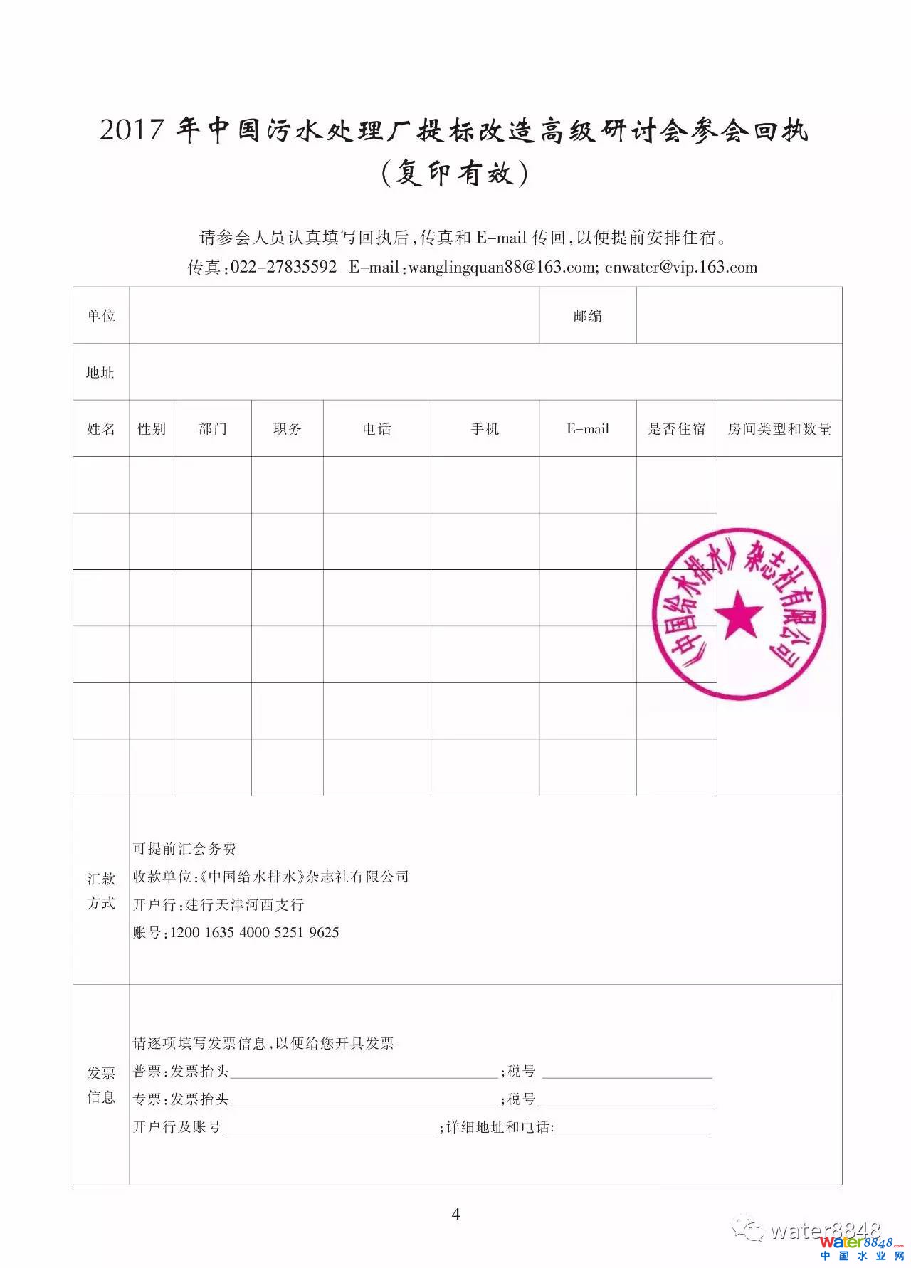 2017年中國污水處理廠提標改造高級研討會參會回執(zhí)(復印有效)