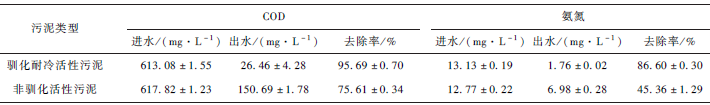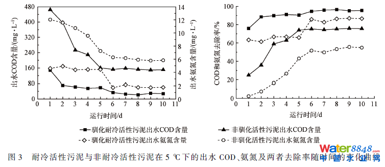 2. 4馴化后的耐冷活性污泥與非耐冷活性污泥在低溫下污水處理能力的比較