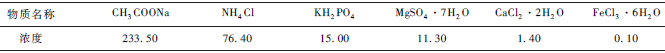 2014 年11 月上旬,從四川省阿壩州馬爾康市的市政下水道、河流湖泊中采樣,當時的采樣溫度為5 ℃左右。隨后,將采集來的污泥用于耐冷微生物的篩選與馴化,微生物生長的培養(yǎng)基采用LB 培養(yǎng)基,后期培養(yǎng)活性污泥的污泥來源是成都市龍泉驛區(qū)的平安污水處理廠。實驗用的人工污水配方如表1 和表2所示。