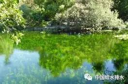 ②景觀水系蜿蜒曲折造成沿岸較長,湖畔樹木密集,每年大量枯枝落葉、花瓣等植物殘?bào)w直接或隨地表徑流進(jìn)入水體,腐爛后造成水體中有機(jī)物、氮、磷等增加,為藻類大量生長提供了營養(yǎng)源。