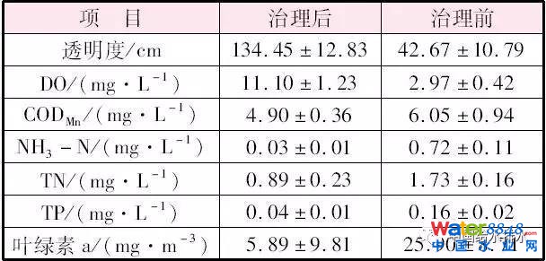 表1 古猗園水體治理前后水質(zhì)監(jiān)測(cè)結(jié)果