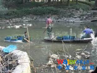 對(duì)于富營養(yǎng)化的湖泊水污染治理來說, 滅藻系統(tǒng)是效果最直接的處理設(shè)施,結(jié)合古猗園古典園林特色、景觀要求高等情況,采用了滅藻效果好、無二次污染、有成功實(shí)例的 “食藻蟲-水下森林” 構(gòu)建方案。其基本思路是以食藻蟲食藻控藻作為啟動(dòng)因子,繼而引起各項(xiàng)生態(tài)系統(tǒng)恢復(fù)的連鎖反應(yīng),包括底泥有益微生物恢復(fù)、底泥昆蟲蠕蟲恢復(fù)、底棲螺貝類恢復(fù)到沉水植物恢復(fù)、土著魚蝦類等水生生態(tài)系統(tǒng)恢復(fù),最終實(shí)現(xiàn)水體的內(nèi)源污染生態(tài)自凈功能和系統(tǒng)經(jīng)濟(jì)服務(wù)功能。主要工序:清除水體中的魚類(為食藻蟲繁殖生長創(chuàng)造條件)→投放食藻蟲(吃藻控藻,提高水體透明度)→種植沉水植物(吸收水體中的磷、氮等營養(yǎng)物質(zhì),消除富營養(yǎng)化)。