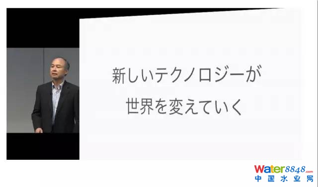大家好!我是孫正義。剛才播放了開場視頻,我感到非常開心。我認(rèn)為我們正處在變革的時代當(dāng)中。產(chǎn)業(yè)革命在競爭方面改變了每個人的生活,而這次的信息革命是要更進(jìn)一步地帶領(lǐng)我們?nèi)ネF(xiàn)在每個人都沒有想象過的世界的革命。我們正好在可以挑戰(zhàn)的時候趕上這次革命,真的是非常棒!