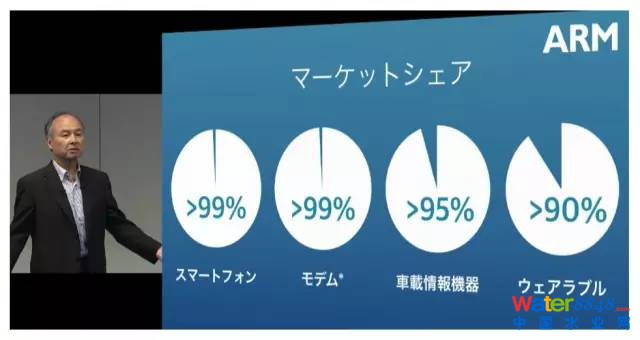 軟銀收購的ARM(英國Acorn有限公司設(shè)計(jì)的低功耗成本的第一款RISC微處理器)在移動設(shè)備市場占有率高達(dá)90%。