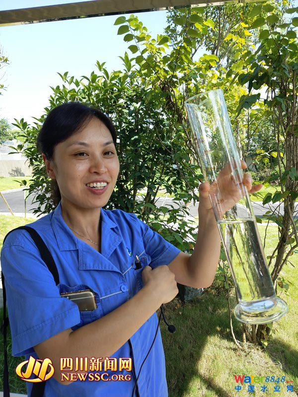 又臟又臭的污水經(jīng)過一道一道的工序,顏色慢慢由濁變清。在污水處理出水口,工作人員拿一個(gè)空瓶子,裝著處理后的“污水”給記者看,出水水質(zhì)清澈透明,猶如純凈水,符合國家(GB18918-2002)一級A類標(biāo)準(zhǔn)。