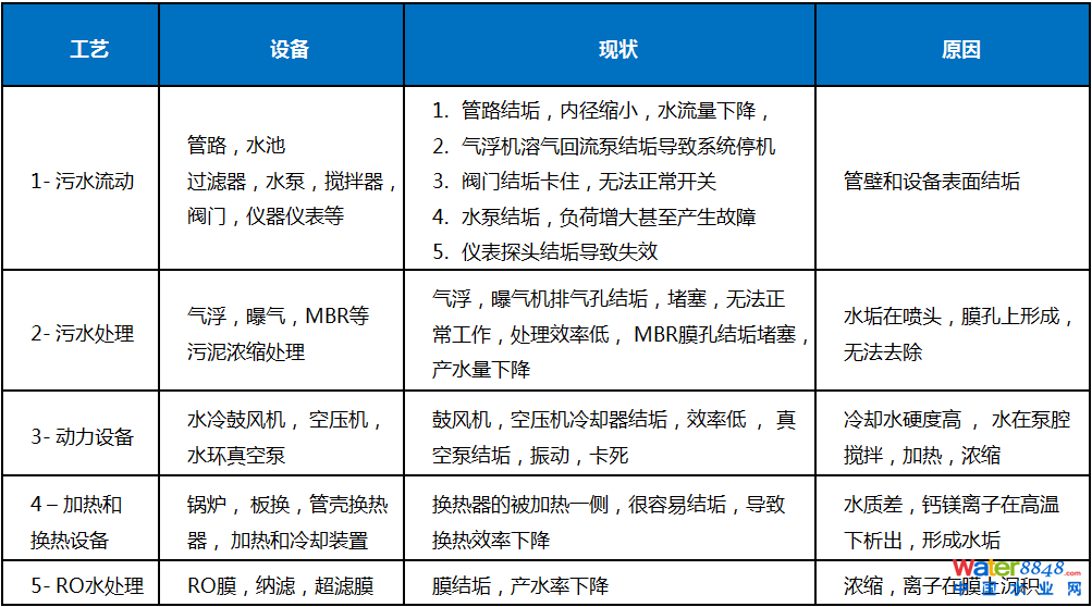 工業(yè)污水處理水量大,水質(zhì)復(fù)雜,有很多種工藝, 可能結(jié)垢的設(shè)備包括: