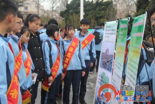 隨后,李滄環(huán)保分局在滄口公園廣場舉行了大型宣傳活動,志愿者們從污水處理廠進(jìn)水口、出水口采來了樣品,為市民展示了“污水變清水”的神奇效果。在接下來的環(huán)節(jié)中,“綠色先行”環(huán)保志愿團(tuán)志愿者代表發(fā)表感言,帶領(lǐng)志愿者們進(jìn)行環(huán)保宣誓,以身作則,節(jié)水愛水。