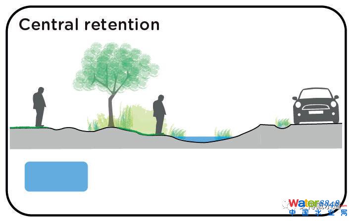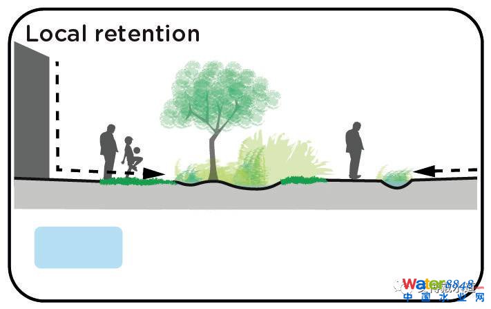 用于將屋頂及周圍地區(qū)的雨洪滯留在更大區(qū)域內(nèi)