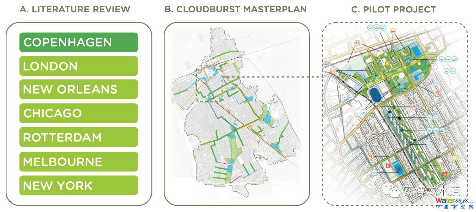 哥本哈根,一個擁有世界領(lǐng)先的暴雨管理系統(tǒng)的城市,用“暴雨計劃 Cloudburst”一詞來形榮降雨量在短時間內(nèi)達(dá)到一種極端的狀況。鑒于該研究建立在哥本哈根進(jìn)行暴雨管理的經(jīng)驗基礎(chǔ)之上,因此在整個項目進(jìn)行過程中都沿用該詞。